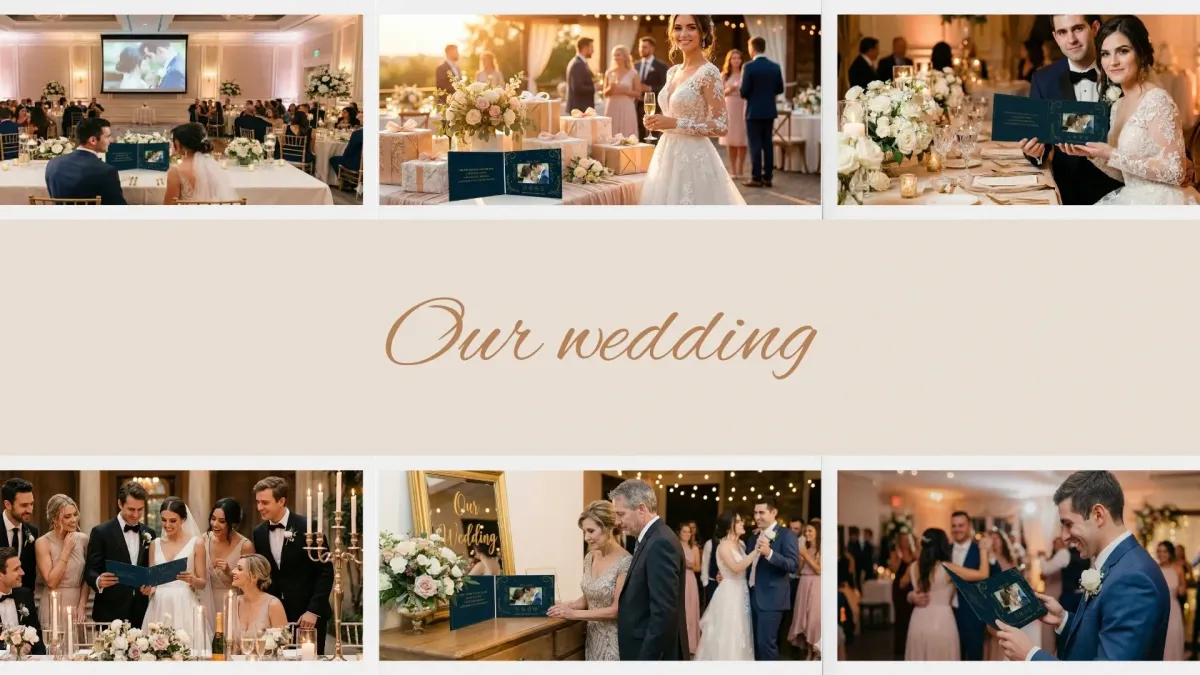 The Echo Memory Book becomes part of the wedding experience itself. Couples often choose to: